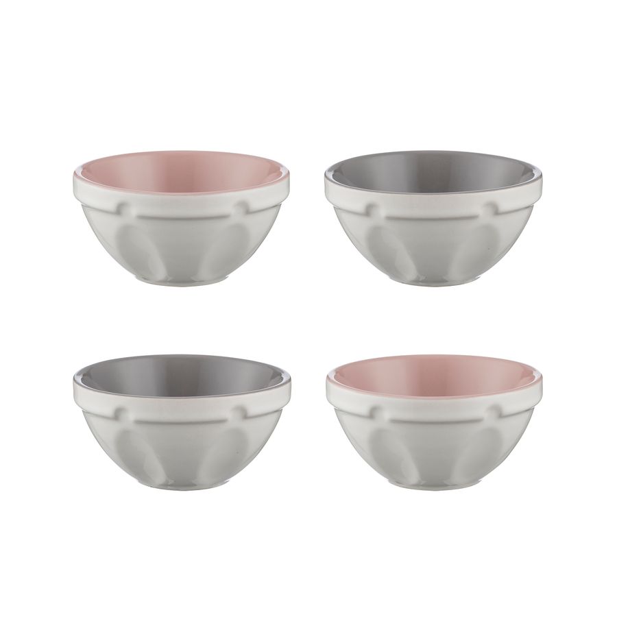 4 traditionelle Schälchen aus splitterresistentem Steingut für die Zubereitung von Speisen. Die niedlichen Miniversionen der klassischen Mason Cash Rührschüssel sind ideal zum Aufbewahren von vorgewogenen Zutaten, von zubereiteten Lebensmitteln für einfaches Vorbereiten beim Kochen und backen. Hergestellt aus sorgfältig ausgewähltem, splitterfresistentem Steingut, das sowohl mikrowellen- als auch spülmaschinenfest ist. Jede Schale = 10 (L) x 10 (B) x 5 (H) cm