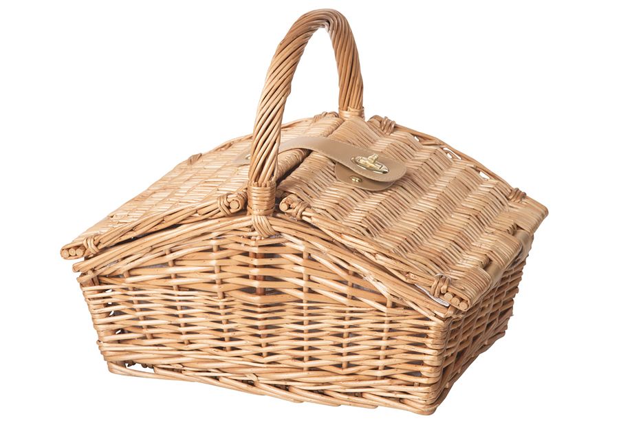 gesottene Vollweide, rechteckig, zwei Klappdeckel (seitlich abfallend) mit Kunstleder befestigt, oben Kunstlederlasche mit Verschluss, stabiler Henkel, mit Stoffausschlag hellgrau (LxBxH): 33x22x16 cm