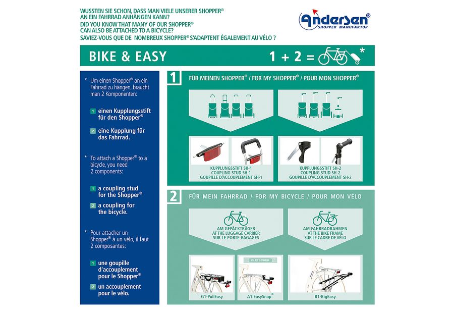 chromatisiertes Stahlrohrgestell, faltbarer Griff, als Fahrradanhänger einsetzbar, Räder leicht abnehmbar, Leichtlaufräder, Spurbreite 45 cm, Raddurchmesser 15 cm, Fahrgestell Höhe 101 cm, Gewicht Fahrgestell 1,8 kg, Fahrgestelltragkraft 40 kg, Tasche: Reflektoren, Seitentasche, Innentasche, wasserabweisend, Tasche leicht abnehmbar, (BxHxT): 35x57x22 cm, Gewicht 0,8 kg·schwarz 44 l