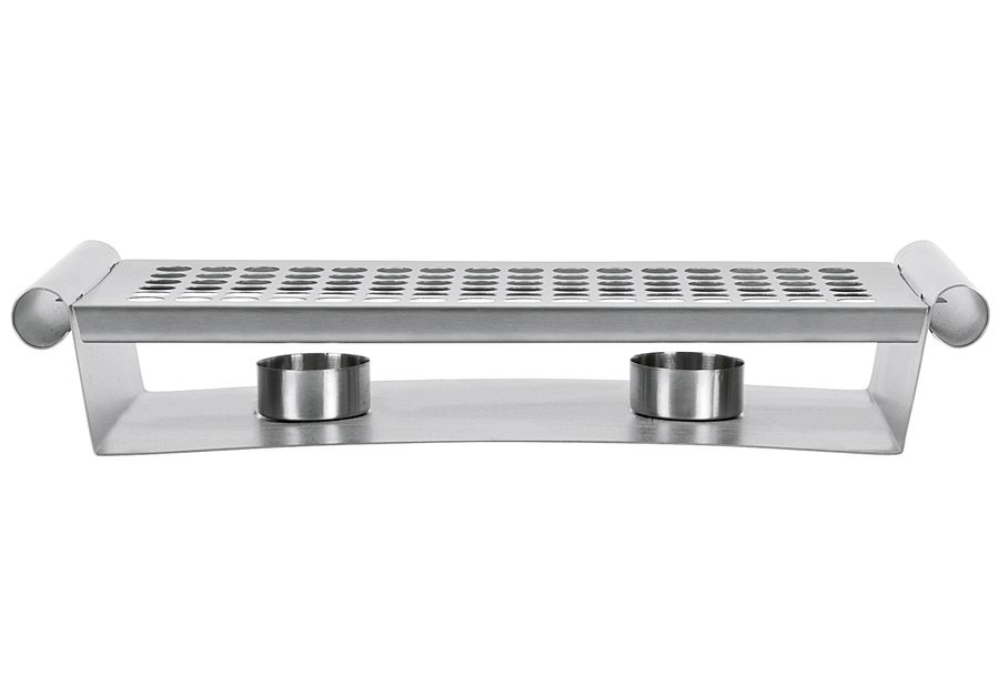 2-flammig, Edelstahl, matt poliert, inkl. 2 Teelichter·silber (LxBxH): 34x13x6 cm·