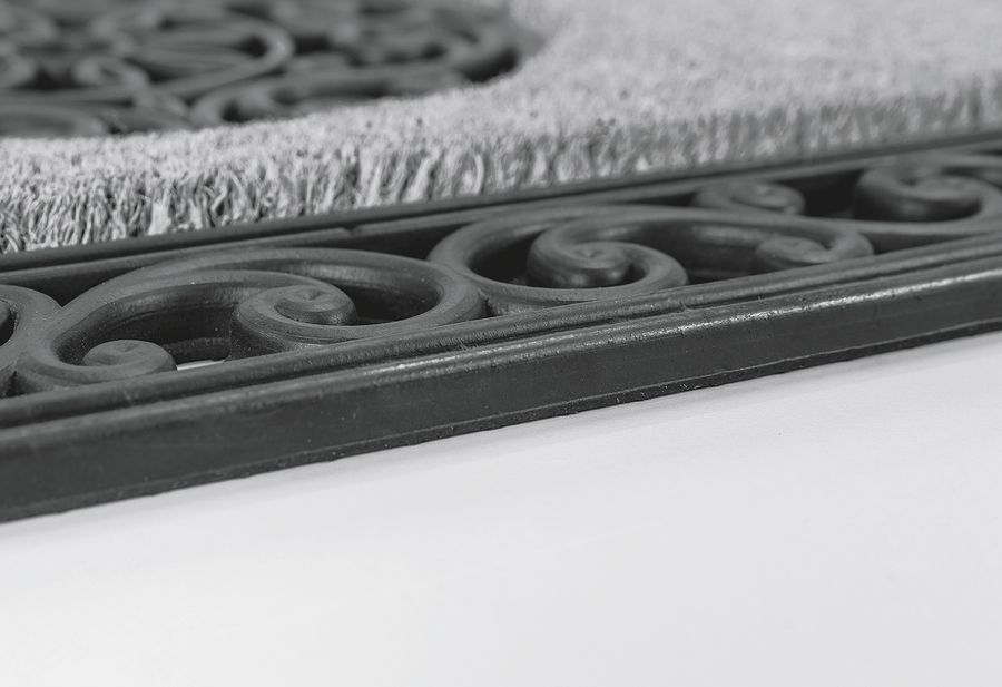 100% Kokos, robuste, schwere Qualität, eignet sich ideal für den überdachten Außenbereich, Gummi-Unterseite verhindert Verrutschen, durch die natürlichen Kokosfasern ist die Oberfläche resistent gegen Keime und Bakterien und überzeugt durch ihre gute Reinigungswirkung·grau (LxB): 75x45 cm