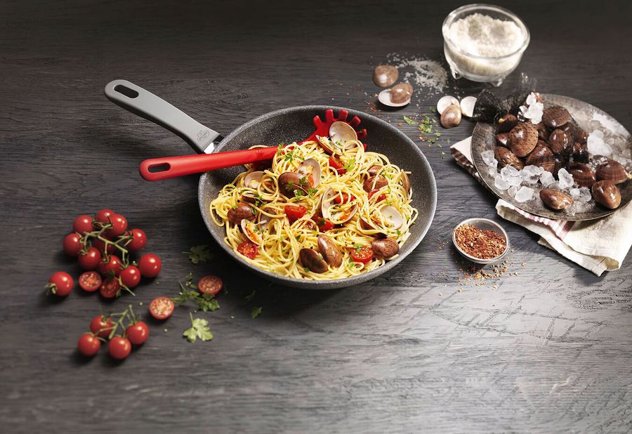 Aluminium, Edelstahlboden, 5-Lagen-Antihaftbeschichtung GRANITIUM Extreme, schnelle und gleichmäßige Wärmeverteilung, ideal zum Kochen, Braten und Garen, Thermopoint, Soft-Toch-Griffe, für alle Herdarten geeignet, backofengeeignet bis 160°C, spülmaschinengeeignet·Steinoptik grau Ø 32 cm, H 6,2 cm