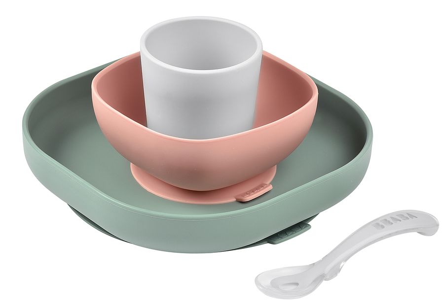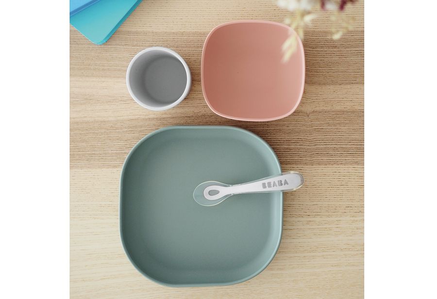 BEABA Geschirrset aus Silikon Eucalyptus grün 4teilig