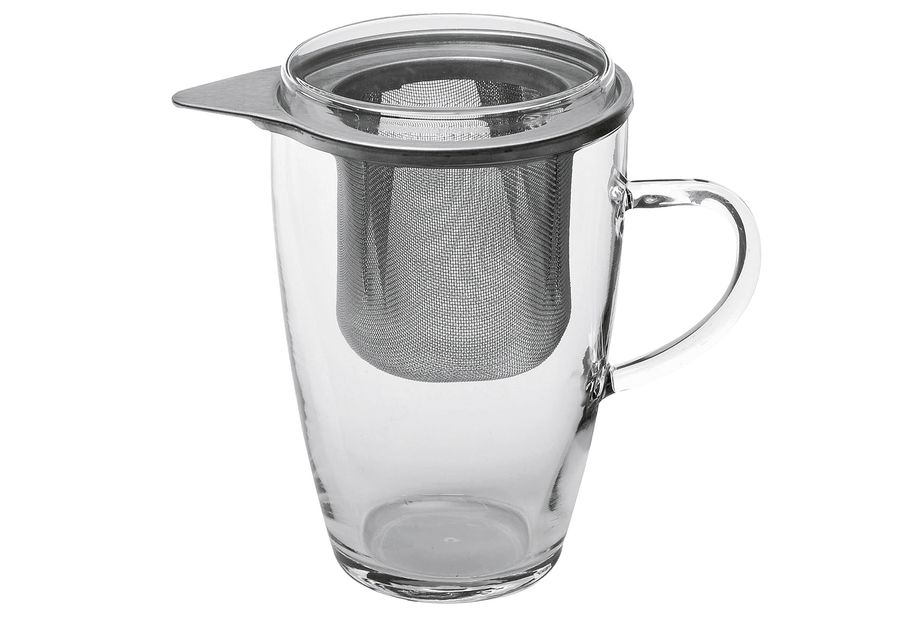 mit Metallsieb und Deckel, Sieb aus rostfreiem Edelstahl, Glas ist mikrowellengeeignet, spülmaschinengeeignet Füllvolumen 470 ml, Nutzvolumen 350 ml, Ø 8,5 cm, H 13,5 cm·