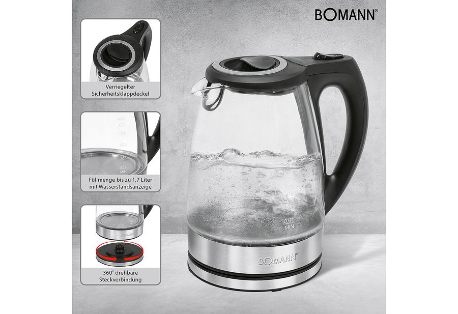 BOMANN WKS 6032 G CB Wasserkocher 1,7l 2200W Glas/Edelstahl