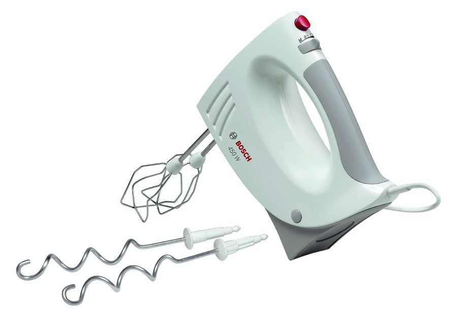 Ergonomisch geformtes Soft-Touch-Gehäuse, 5 Geschwindigkeitsstufen mit unterschiedlicher Drehzahl, zusätzliche Moment- / Turbostufe, separate Auswurftaste für Rührbesen und Knethaken, 2 hocheffiziente Turbobesen für optimales Schlag- und Rührergebnis, 2 stabile Knethaken, Anschlussmöglichkeit für Schnellmixstab, Kabelumwicklung, 450 Watt, Eurostecker CEE 7/16·weiß/grau