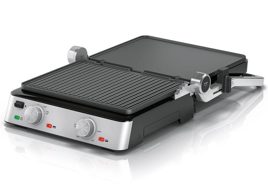 Integrierte Heizelemente, 3 Grillpositionen in einem Gerät (Kontakt, BBQ, Ofen), Individuell einstellbare Temperaturen - Maximale Temperatur 230°C, integrierte Fettauffangschale, Verschlusssystem - sorgt für eine einfache Lagerung, Leistung 2000 Watt, Schukostecker CEE 7/7 (LxBxH): 36,5x31,5x17,3 cm