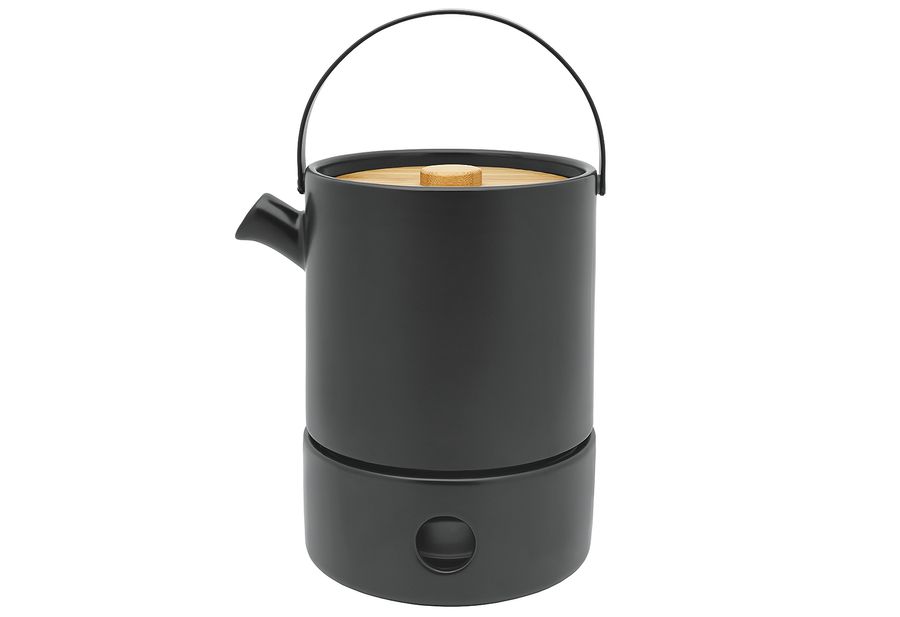 Keramik, Bambusdeckel, Edelstahlfilter, Inhalt: Teekanne und Stövchen·schwarz 1,2 l·Fachhandel exklusiv·