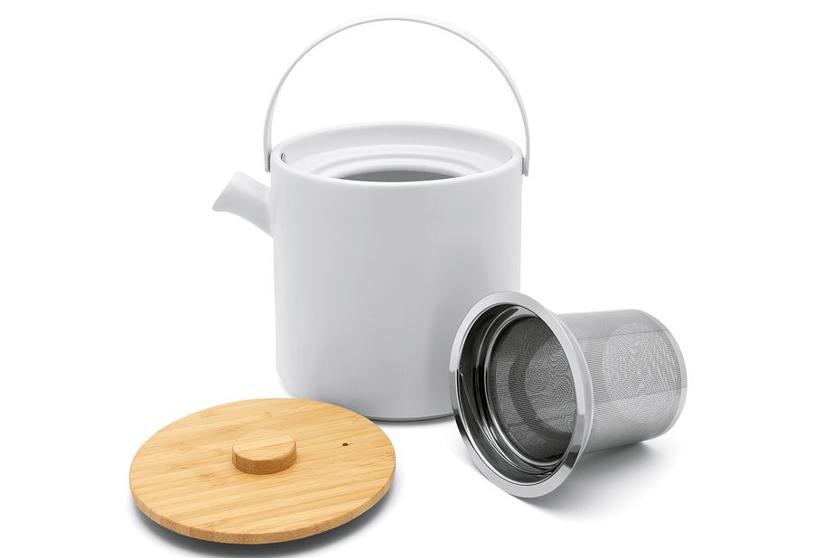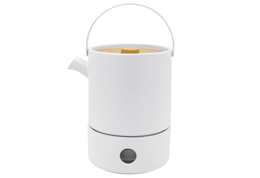 Keramik, Bambusdeckel, Edelstahlfilter, Inhalt: Teekanne und Stövchen·weiß 1,2 l·Fachhandel exklusiv·