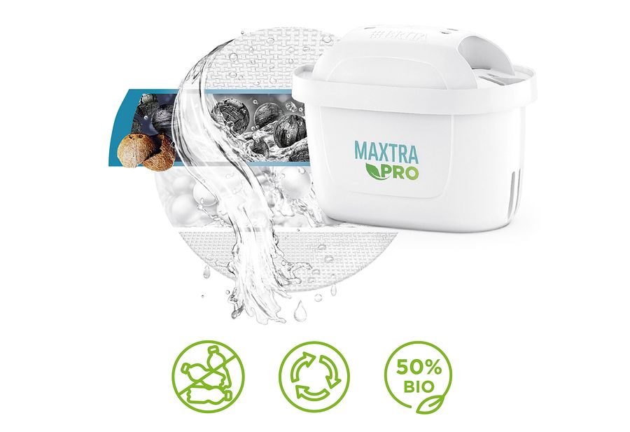 60% recyceltes Borosilikatglas, Kunststoff, inkl. 1 Maxtra pro All-in-1 Kartusche, mit LED Kartuschenwechselanzeige, reduziert zuverlässig Kalk und geschmacksstörende Stoffe, volles Aroma bei Tee und Kaffee, schützt Haushaltsgeräte vor Verkalkung, spülmaschinengeeignet (außer LED Anzeige)·transparent Gesamtvolumen 2,5 l, gefiltertes Wasser 1,5 l, (LxBxH): 17x26x31 cm