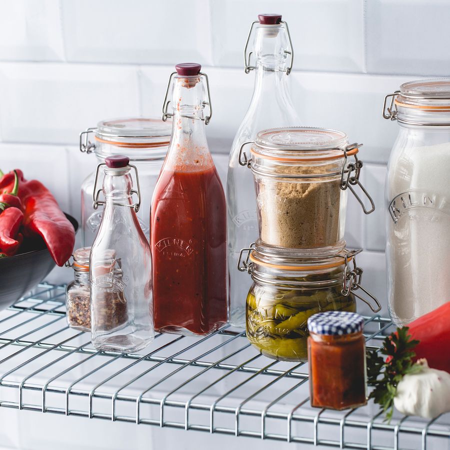 Die Kilner® Glasflaschen mit Bügelverschluss wurden speziell für die Aufbewahrung von Ölen, Saucen und Säften entwickelt. Der Bügelverschluss aus Edelstahl mit Silikondichtung sorgt für den luftdichten Verschluss und dafür, dass die Lebensmittel länger frisch bleiben. Die Flaschen sehen nicht nur schick aus, sondern sind auch die ideale Geschenkidee, ob selbstgemachte Vanillesauce, Eierlikör aus eigener Herstellung oder andere selbsthergestellten Spezialitäten in dieser Flasche präsentiert sich der "Homemade" Inhalt besonders elegant. Die hochwertigen Glasflaschen halten länger und bewahren Ihre Lebensmittel sicher auf. Glas ist gut für Lebensmittel. Es besteht aus reinen, natürlichen Rohstoffen, es ist frei von BPA, BPS und Phthalaten und überträgt keine Schadstoffe an die Lebensmittel und somit definitiv gesündere Wahl für die Lagerung, Konservierung und auch für den Gebrauch von Lebensmitteln. Der hochwertige Bügelverschluss ist so konstruiert, dass die Spannung 100% perfekt ist, damit wird die ideale Abdichtung bei jedem Mal gewährleistet. Zudem ist Glas nachhaltig, wiederverwendbar und recycelbar. Und somit ein positiver Beitrag für unsere Umwelt. Erhältlich in drei Ausführungen. Inhalt: 1 Liter.