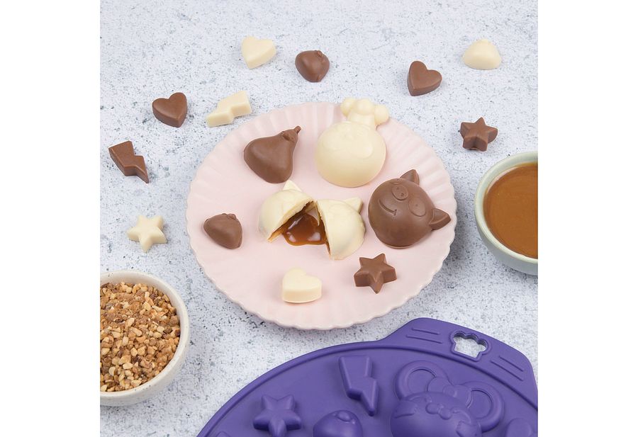 Silikon, für 21 verschiedene Motive, strapazierfähiges Material, zur Herstellung von Schokolade, Bonbons, Eiswürfel & Seife, beständig gegen Temperaturen von -40 bis 230°C,·lila