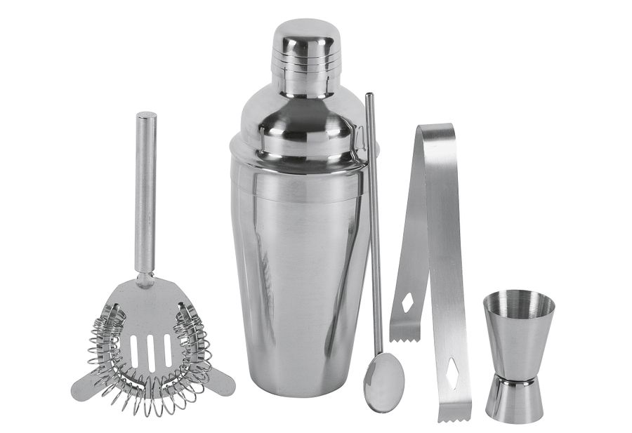 Edelstahl, poliert, Inhalt: Cocktailshaker (500 ml), Cocktaillöffel, Eiszange, Barsieb und Barmaß (20/30 ml) 500 ml·Fachhandel exklusiv·