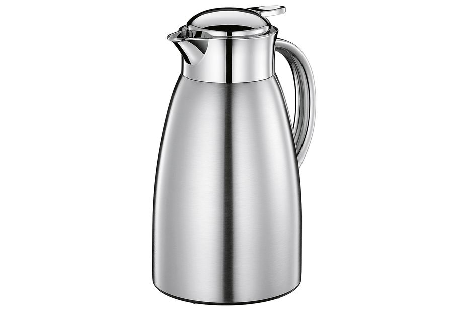 Edelstahl satiniert / hochwertiger Kunststoff, mit Doppelwand-System, bruchsicher, praktischer Schraubverschluss mit komfortabler Einhand-Ausgießtaste, hält bis zu 12h heiß oder 24h kalt··silber 1,5 l, Ø 13,5 cm, H 20,5 cm·Fachhandel exklusiv