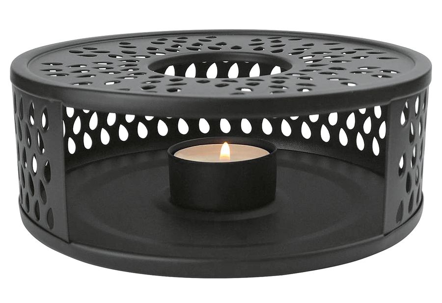 Edelstahl mit Teelichteinsatz (Ø 4 cm), extra große Öffnung, 10,5 cm, zum bequemen herausnehmen des Teelichteinsatzes, für sämtliche Teekannen geeignet, spülmaschinengeeignet, kratz- und stoßfest·schwarz Ø 15,5 cm, H 5,5 cm