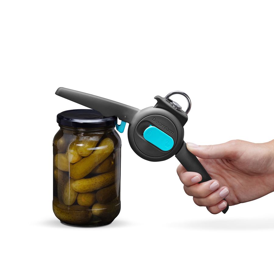 Entdecken Sie den Dopener, den innovativen Dosenöffner, der Ihre Küchenerfahrung auf ein neues Level hebt. Es gibt einige Dosenöffner die einen sicheren Rand an der Dose hinterlassen, aber nur mit dem Dopener von Dreamfram geht das aufsetzen auf die Dosen mit einem einfachen Knopfdruck. Der einzigartige Mechanismus ermöglicht eine mühelose Bedienung: Drücken Sie einfach die beiden Griffe zusammen, und der Dopener öffnet jede Dose schnell und einfach. Dank des hochwertigen Schneiderads aus gehärtetem Edelstahl drückt der Dopener durch Aluminium, ohne scharfe Kanten zu hinterlassen. Die praktische blaue Taste auf der Oberseite ermöglicht es Ihnen, den Deckelverschluss zu bedienen, wodurch der Dosendeckel sicher gehalten und von der Dose entfernt wird – ganz ohne direkten Kontakt. Der Dopener bietet eine praktische Lösung zum Öffnen von Einmachgläsern. Mithilfe des integrierten Hakens lässt sich Luft unter den Deckel leiten, wodurch das Glas mühelos geöffnet werden kann. Auch das Öffnen von Flaschen gelingt mit dem Dopener problemlos. Alles vereint in einem platzsparenden und schlanken Design. Der Dopener ist die perfekte Kombination aus Funktionalität und Komfort und ein unverzichtbares Werkzeug in jeder Küche.