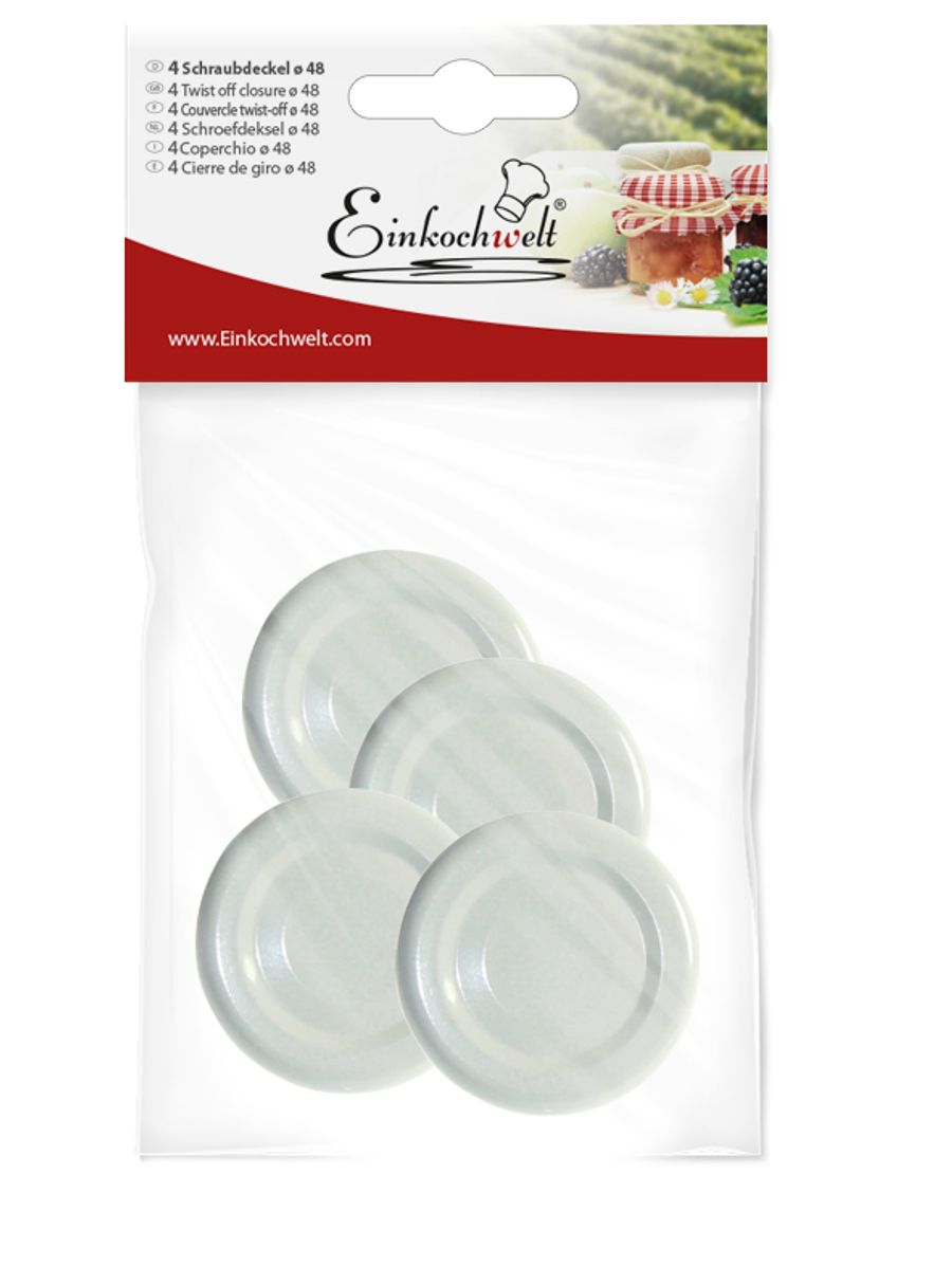 DOSEN-ZENTRALE Twist-off Deckel Einkochwelt past. Ø48mm weiß 4er Beutel