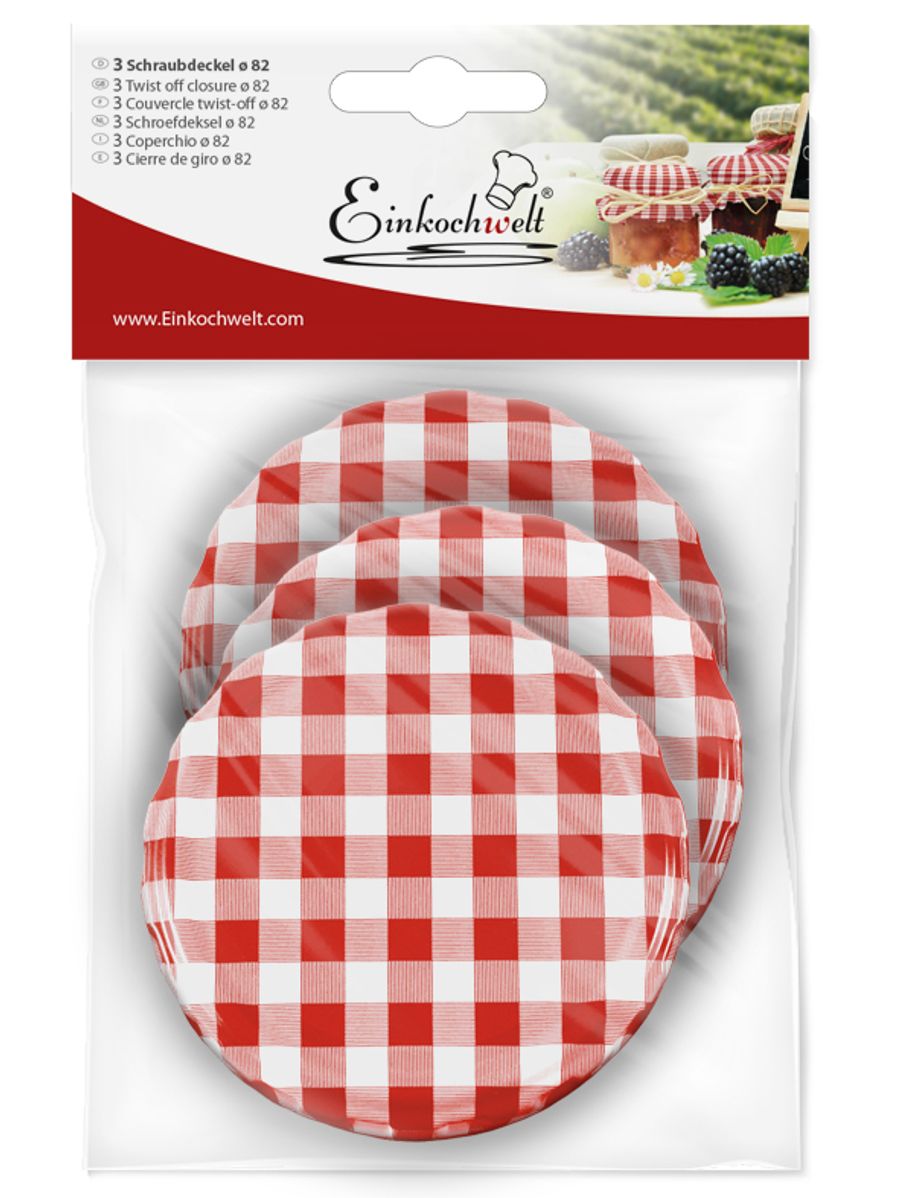 DOSEN-ZENTRALE Twist-off Deckel sterilisationsfest Ø82mm rot/weiß kariert 3er Beutel
