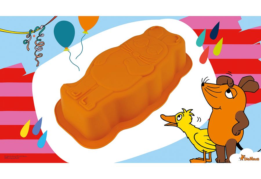 Platinsilikon, hervorragende Antihaft-Eigenschaften, temperaturbeständig bis 230 °C, Faltschachtel mit Sichtfenster·Maus-Orange (LxBxH): 29,5x16x6,5 cm