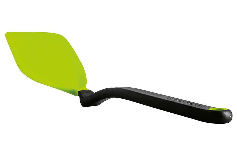 Nylon, antihaftbeschichtet, bis 250°C hitzebeständig, spülmaschinenfest, mit dem einzigartig geformten Kopf lässt sich das Essen in einer heißen Pfanne zerkleinern, der biegbare, grosse Kopf lässt sich einfach auch unter das Essen schieben und es sauber in einem Stück aufheben oder umdrehen, das mehrfach abgerundete Design des Kopfes lässt Sie jede Ecke von Pfannen ausschaben, ohne antihaftbeschichtetes Kochgeschirr zu zerkratzen, halten Sie Küchentische und Theken sauber und Essen hygienisch dank des raffinierten Knicks im Griff, der den Kopf vom Tisch hochstehen lässt·grün (LxBxH): 305x95x50 mm·Fachhandel exklusiv·