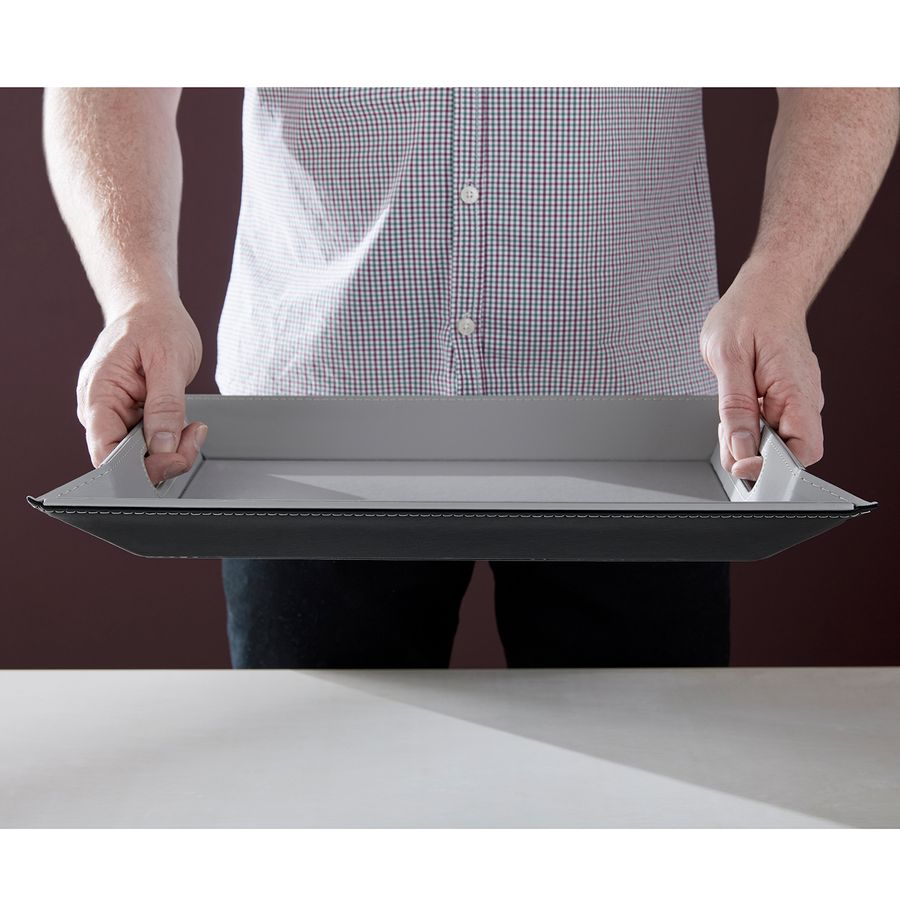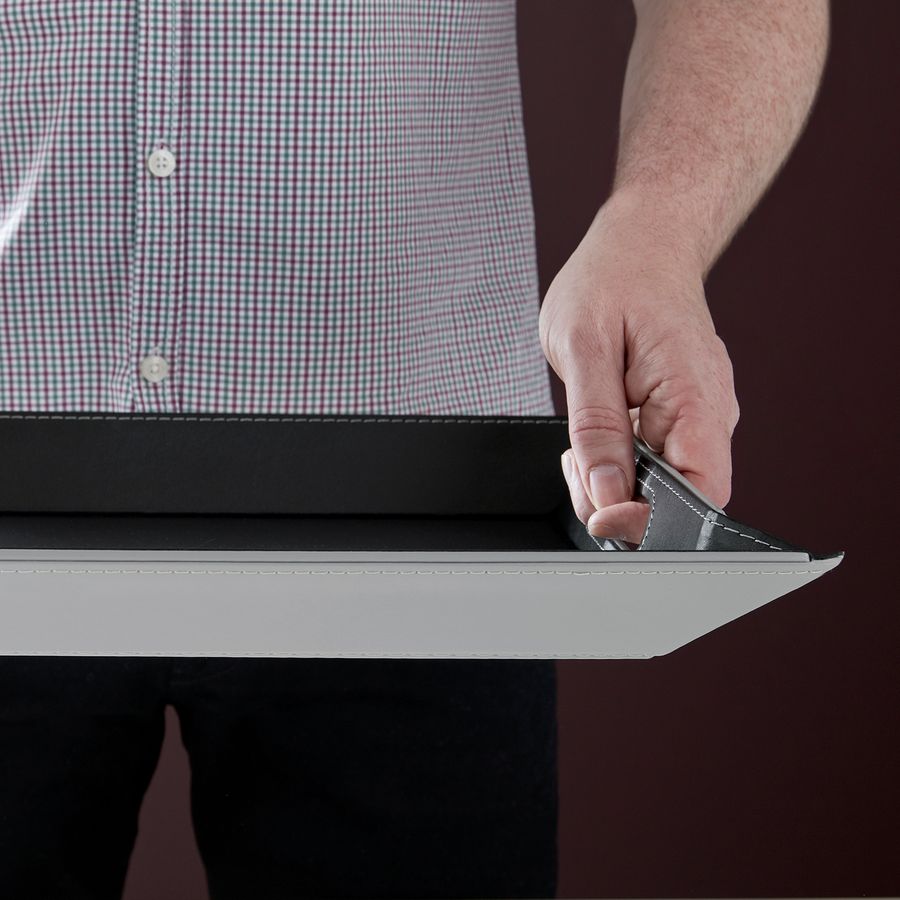 Das multifunktionale Design des FREEFORM® Wendetablett setzt Zeit und Raum frei: Das multifunktionale Design und die Verwendung von beiden Seiten verleiht dem FREEFORM Tablett seine unverwechselbaren Eigenschaften. Die zwei individuellen Merkmale machen das FREEFORM Wendetablett zu einem ganz besonderen Meisterwerk – die Tabletts kombinieren zwei Vorteile in einem: zum einen kann jedes Tablett von beiden Seiten (2farbig) verwendet werden, gleichzeitig besitzt es die außergewöhnliche Funktion sich durch einfaches Ablegen in ein elegantes Tischset zu verwandeln. Sie sind einfach in ihrer Form und elegant in der Funktion - ein wahres Meisterwerk, welches zwischen einem eleganten Tischset und einem vielseitigen Tablett wechselt, nur indem man es anhebt (Tablett) und wieder hinlegt (Tischset). Die recht unscheinbaren Griffe, lassen sich zum Tragen hochklappen, so wandelt sich das Tischset in ein einfach zu transportierendes Tablett. Nur durchs Ablegen wandelt es sich in eine flache und stilvolle Tischunterlage. Für einen frischen, neuen Look - einfach umdrehen. Praktisch, platzsparend und besonders pflegeleicht - nur mit einem feuchten Tuch abwischen. Bis 90° Celsius hitzebeständig. Ein echtes Design-Meisterwerk, welches den Alltag erleichtert und verschönert. FREEFORM steht für hochwertige Tabletts, Tischsets und Untersetzer aus Kunstleder. Die eleganten Tischaccessoires aus dem Bezirk Somerset im Westen Englands punkten neben dem hochwertigen Aussehen gleichzeitig auch mit praktischen Zusatzfunktionen. Wie zum Beispiel das exklusive, wandelbare Wendetablett, welches sich durch einfaches Ablegen in ein schickes Tischset verwandelt. Alle Tischsets der Firma freeform sind aus hochwertigem Kunstleder, sie sind pflegeleicht und hitzebeständig und können platzsparend verstaut werden. Die Tabletts und Tischsets sind somit nicht nur praktisch sondern verschön zugleich auch Ihr Heim.