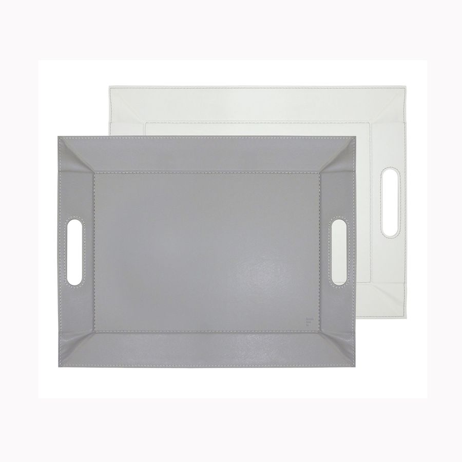Das multifunktionale Design des FREEFORM® Wendetablett setzt Zeit und Raum frei: Das multifunktionale Design und die Verwendung von beiden Seiten verleiht dem FREEFORM Tablett seine unverwechselbaren Eigenschaften. Die zwei individuellen Merkmale machen das FREEFORM Wendetablett zu einem ganz besonderen Meisterwerk – die Tabletts kombinieren zwei Vorteile in einem: zum einen kann jedes Tablett von beiden Seiten (2farbig) verwendet werden, gleichzeitig besitzt es die außergewöhnliche Funktion sich durch einfaches Ablegen in ein elegantes Tischset zu verwandeln. Sie sind einfach in ihrer Form und elegant in der Funktion - ein wahres Meisterwerk, welches zwischen einem eleganten Tischset und einem vielseitigen Tablett wechselt, nur indem man es anhebt (Tablett) und wieder hinlegt (Tischset). Die recht unscheinbaren Griffe, lassen sich zum Tragen hochklappen, so wandelt sich das Tischset in ein einfach zu transportierendes Tablett. Nur durchs Ablegen wandelt es sich in eine flache und stilvolle Tischunterlage. Für einen frischen, neuen Look - einfach umdrehen. Praktisch, platzsparend und besonders pflegeleicht - nur mit einem feuchten Tuch abwischen. Bis 90° Celsius hitzebeständig. Ein echtes Design-Meisterwerk, welches den Alltag erleichtert und verschönert. FREEFORM steht für hochwertige Tabletts, Tischsets und Untersetzer aus Kunstleder. Die eleganten Tischaccessoires aus dem Bezirk Somerset im Westen Englands punkten neben dem hochwertigen Aussehen gleichzeitig auch mit praktischen Zusatzfunktionen. Wie zum Beispiel das exklusive, wandelbare Wendetablett, welches sich durch einfaches Ablegen in ein schickes Tischset verwandelt. Alle Tischsets der Firma freeform sind aus hochwertigem Kunstleder, sie sind pflegeleicht und hitzebeständig und können platzsparend verstaut werden. Die Tabletts und Tischsets sind somit nicht nur praktisch sondern verschön zugleich auch Ihr Heim.