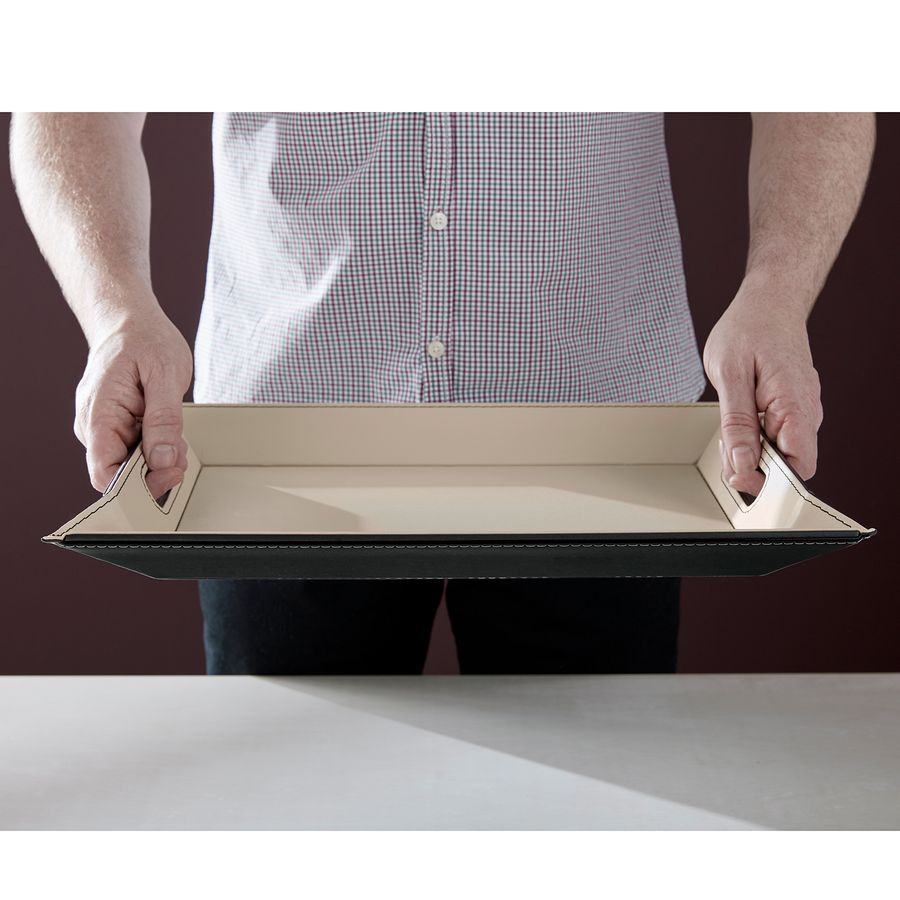 Das multifunktionale Design des FREEFORM® Wendetablett setzt Zeit und Raum frei: Das multifunktionale Design und die Verwendung von beiden Seiten verleiht dem FREEFORM Tablett seine unverwechselbaren Eigenschaften. Die zwei individuellen Merkmale machen das FREEFORM Wendetablett zu einem ganz besonderen Meisterwerk – die Tabletts kombinieren zwei Vorteile in einem: zum einen kann jedes Tablett von beiden Seiten (2farbig) verwendet werden, gleichzeitig besitzt es die außergewöhnliche Funktion sich durch einfaches Ablegen in ein elegantes Tischset zu verwandeln. Sie sind einfach in ihrer Form und elegant in der Funktion - ein wahres Meisterwerk, welches zwischen einem eleganten Tischset und einem vielseitigen Tablett wechselt, nur indem man es anhebt (Tablett) und wieder hinlegt (Tischset). Die recht unscheinbaren Griffe, lassen sich zum Tragen hochklappen, so wandelt sich das Tischset in ein einfach zu transportierendes Tablett. Nur durchs Ablegen wandelt es sich in eine flache und stilvolle Tischunterlage. Für einen frischen, neuen Look - einfach umdrehen. Praktisch, platzsparend und besonders pflegeleicht - nur mit einem feuchten Tuch abwischen. Bis 90° Celsius hitzebeständig. Ein echtes Design-Meisterwerk, welches den Alltag erleichtert und verschönert. FREEFORM steht für hochwertige Tabletts, Tischsets und Untersetzer aus Kunstleder. Die eleganten Tischaccessoires aus dem Bezirk Somerset im Westen Englands punkten neben dem hochwertigen Aussehen gleichzeitig auch mit praktischen Zusatzfunktionen. Wie zum Beispiel das exklusive, wandelbare Wendetablett, welches sich durch einfaches Ablegen in ein schickes Tischset verwandelt. Alle Tischsets der Firma freeform sind aus hochwertigem Kunstleder, sie sind pflegeleicht und hitzebeständig und können platzsparend verstaut werden. Die Tabletts und Tischsets sind somit nicht nur praktisch sondern verschön zugleich auch Ihr Heim.