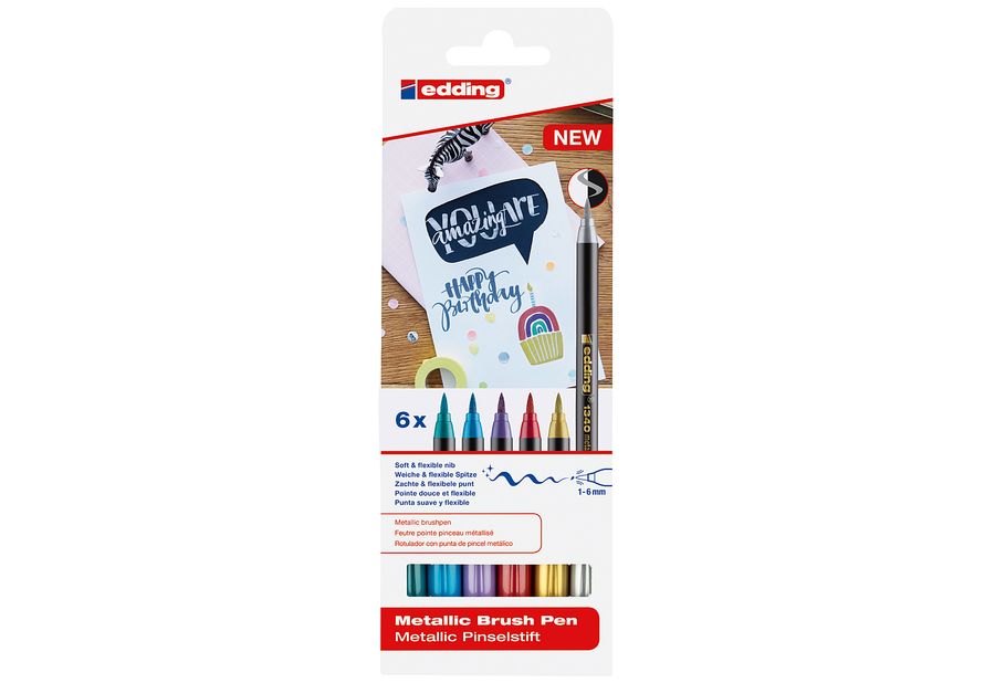 EDDING Fasermaler 1340 Brushpen metallic sortiert 6er Set