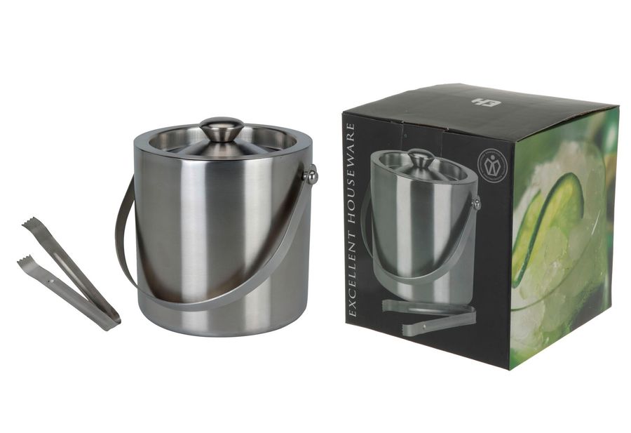 Edelstahl, doppelwandig, mit Henkel und Eiszange (BxH): 15x16 cm