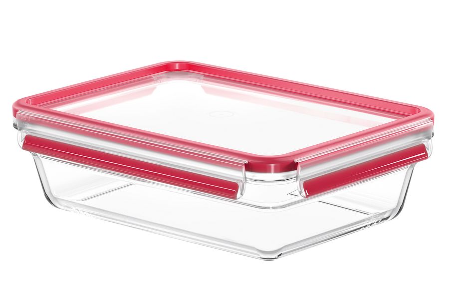 Borosilikatglas, Deckel: Kunststoff (Polypropylen), stapelbar, bis 420°C ofenfest, mit FRISCHE-Dichtung, hygienisch, dicht, unbedenklich, gefriergeeignet, mikrowellengeeignet, spülmaschinenfest·transparent / rot 2 l, (LxBxH): 19,7x26,7x8 cm