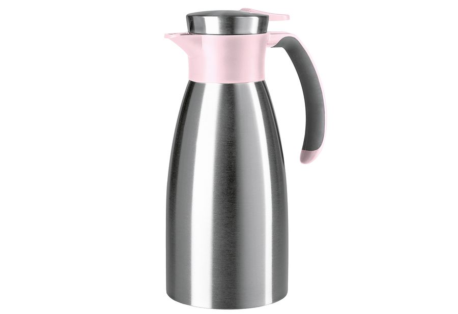 aus doppelwandigem Edelstahl, elegante schlanke Form, platzsparend, mit rutschfestem Soft-Griff, dadurch sicherer Halt, hochwertiger Edelstahl-Deckel mit Einhandbedienung, einzigartiger X-Safe-Isolierkolben mit Aroma-Garantie und Top-Isolierung·puderrosa 1 l, H 24 cm