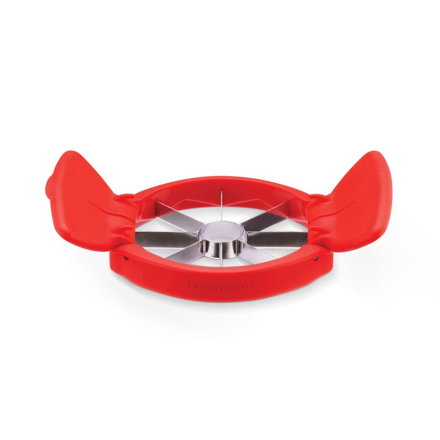 Die erhöhten Griffe von Flapple lassen sich für eine kompakte und platzsparende Aufbewahrung flach zusammenfalten. Das Ass im Ärmel. Die automatisch ausrichtende Basis sorgt für vollständige Schnitte ohne Schneidebrett und lässt sich dann mit den zusammengeklappten Griffen verriegeln, um die Klingen zur sicheren Aufbewahrung abzudecken. Achterstücke. Das Messer mit großem Durchmesser teilt Äpfel aller Größen in 8 gleich große Stücke und entfernt das Kerngehäuse. Klinge für lange Lebensdauer. Doppelt verstärkter japanischer Edelstahl sorgt für eine extrem scharfe und langlebige Klinge.