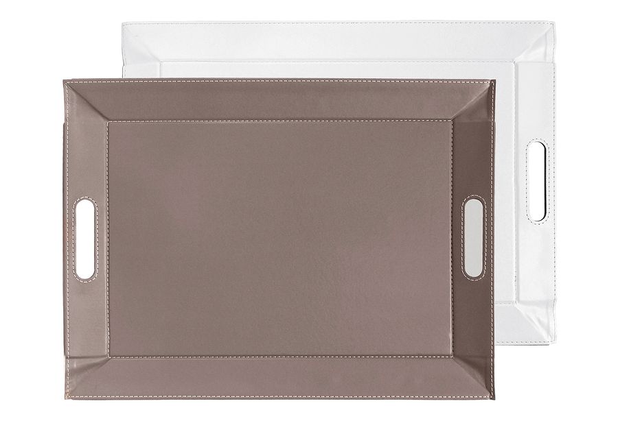 Kunstleder, beidseitig verwendbar, kann auch als Tischset verwendet werden, Griffe sind hochklappbar, bis 90 °C hitzebeständig, einfach mit Tuch zu reinigen·weiß / taupe (LxBxH): 55x41x0,8 cm