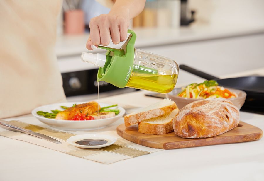 Glas / Kunststoff, Inhalt: Aufsatz, Glas und luftdichtem Deckel, passt auf alle Schraubgläser mit TO-82 Schraubmündung, für’s Frittieren, Grillen, Rösten und Backen, ausgießen, 3-in-1: für leichtes Ausgießen, problemloses Sprühen oder auch Einpinseln mit Öl oder Marinaden, für Fisch, Fleisch, Salate und vieles mehr, spülmaschinengeeignet·grün 350 ml, (LxBxH): 12,2x9,2x22,6 cm