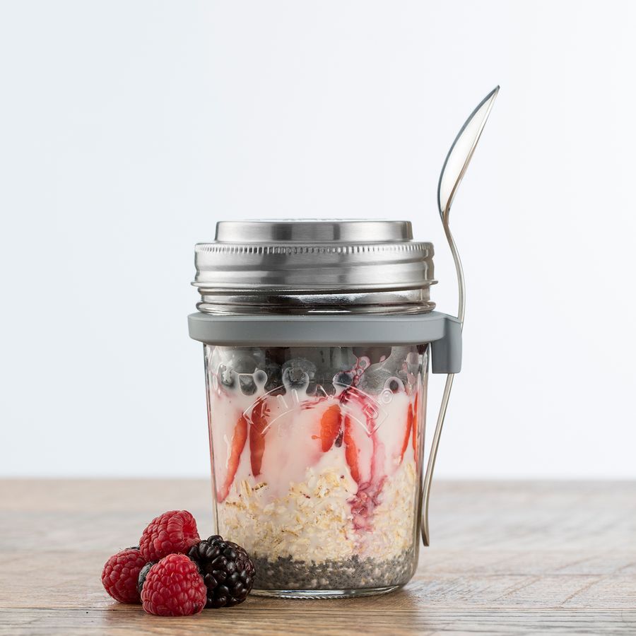 Das Kilner 0,35 Liter Frühstücksglas ist die ideale Aufbewahrungsform für Joghurt, Quark sowie Hafer und Müsli, ob für zu Hause oder unterwegs. Dieses schicke und zugleich besonders praktische Glas ist die optimale Lösung für das Aufbewahren und Transportieren von Frühstück, Snacks und anderen Speisen, denn im Glas sind die Lebensmittel besonders gut aufgehoben! Das hochwertige Glas ist geschmacksneutral, BPA frei und übertragt keine schädlichen Chemikalien oder Toxide an die Lebensmittel. Glas ist also die gesündere und umweltfreundlichere Wahl. Zudem bleibt der Inhalt im Glas besonders lange frisch. Im Glas bleibt der Inhalt besonders lange frisch. Auch das Lagern über Nacht ist kein Problem. Im Set enthalten ist ein Kilner® 0,35 Liter Weithalsglas, ein Edelstahldeckel, der gleichzeitig als Messbecher für eine bessere Portionskontrolle dient. Dieses Set enthält auch einen Viners Edelstahllöffel, eine Silikonlöffelhalterung und eine luftdichte Dichtungsscheibe für den sicheren und sauberen Transport.