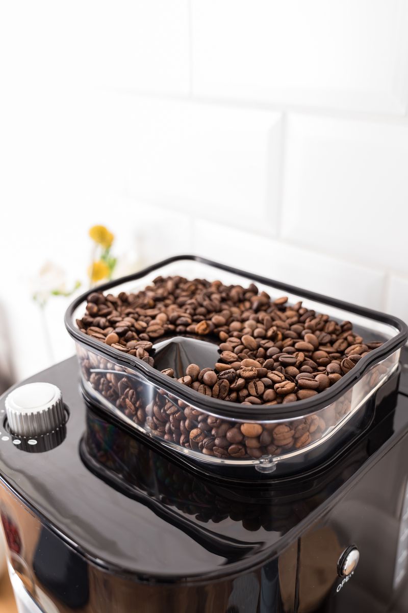 Filterkaffeemaschine mit integriertem Mahlwerk, Tassenanzahl: 12 Tassen, 1,5 Liter Glaskanne, 250 g Bohnenbehälter, Kegelmahlwerk mit 8 Mahlstufen für frisch gemahlenen Kaffee, Auswahl der gewünschten Kaffeestärke: mild, mittel oder stark, auch für bereits gemahlenes Kaffeepulver verwendbar, Soft-Touch LCD-Display, 24 h programmierbare Timerfunktion, 30 min Warmhaltefunktion mit Abschaltautomatik, Schwenkfilterhalter mit Tropf-Stopp Funktion, inklusive Dauerfilter, auch für Filtertüten (Größe 1 x 4) geeignet, Wasserstandsanzeige für einfaches Auffüllen, 900 Watt Leistung, Schukostecker CEE 7/7·schwarz/silber 21,3x43x31,4 cm