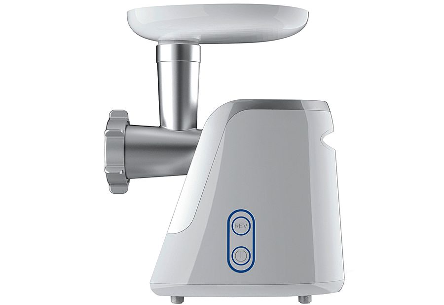 elektronisch geregelter Motor, Schneckengehäuse aus Metall-Guss, Edelstahl-Kreuzmesser mit 4 Flügeln, Tasten mit LED-Beleuchtung, Ein- / Austaste und Rücklauf, Scheibendurchmesser 50 mm, enthaltenes Zubehör: 2 Lochscheiben (Bohrungen 4 mm und 8 mm) für das Verarbeiten von gröberem Fleisch, Wurstfüllvorsatz, Stopfer, Einfüllschale aus Plastik, Spritzgebäckvorsatz, Kebbevorsatz, Gerätemaße B x T x H: 220 x 168 x 377 mm, Gewicht: 3,15 kg, 220 - 240 Volt, 50 / 60 Hz, 350 Watt, Schukostecker CEE 7/7·Metall