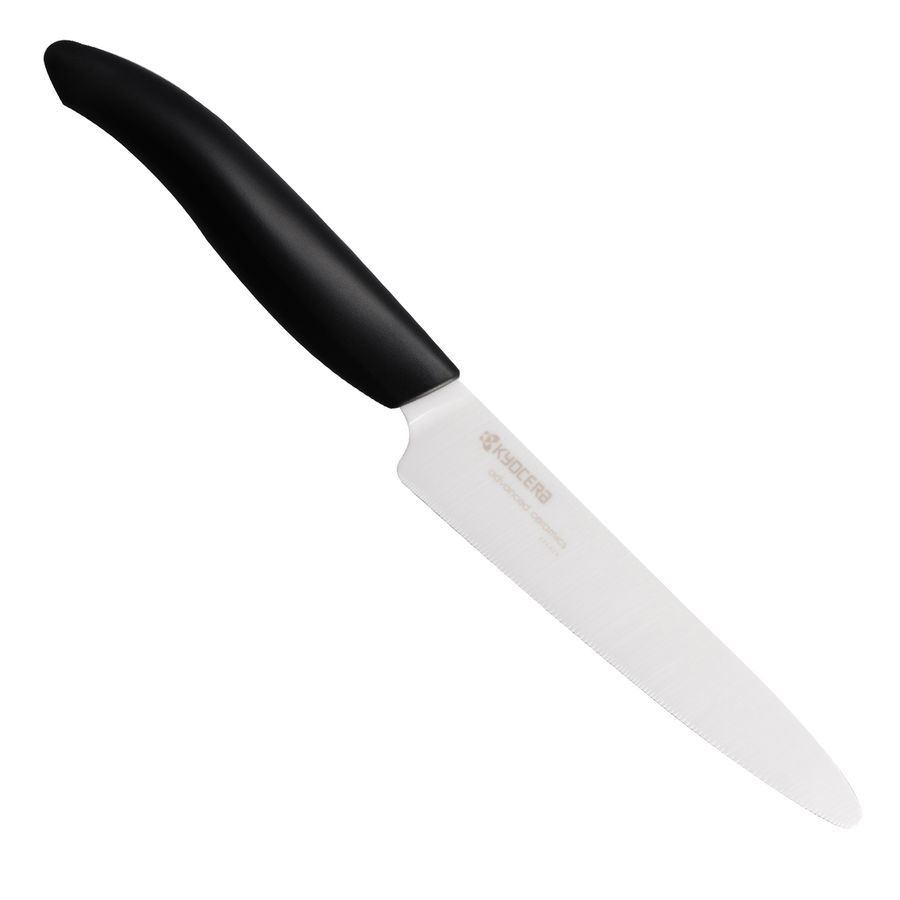 Die Keramikmesser der Kyocera GEN Serie sind die optimalen Messer für den täglichen Gebrauch. Ob Obst, Gemüse, Salat oder knochenfreies Fleisch die Keramikmesser der GEN Serie schneiden alle Zutaten mit besonderer Leichtigkeit. Die extreme Schärfe der Hochleistungskeramikklingen ermöglicht absolut präzise Schnitte. Zudem sind die Messer ultraleicht und machen das Schneiden besonders mühelos und angenehm. Aufgrund der flexiblen Keramikklinge besitzen die Messer eine besonders hohe Bruchfestigkeit. Der ergonomisch geformte Kunststoff-Griff liegt angenehm in der Hand. Keramikklingen sind frei von Metall-Ionen und somit korrosionsfrei. Zudem bleiben die Klingen der Keramikmesser besonders lange scharf, daher ist Nachschleifen für lange Zeit nicht nötig, aber möglich. Die Kyocera Keramikklingen sind handgeschliffen. Die Messer sind spülmaschinengeeignet.
