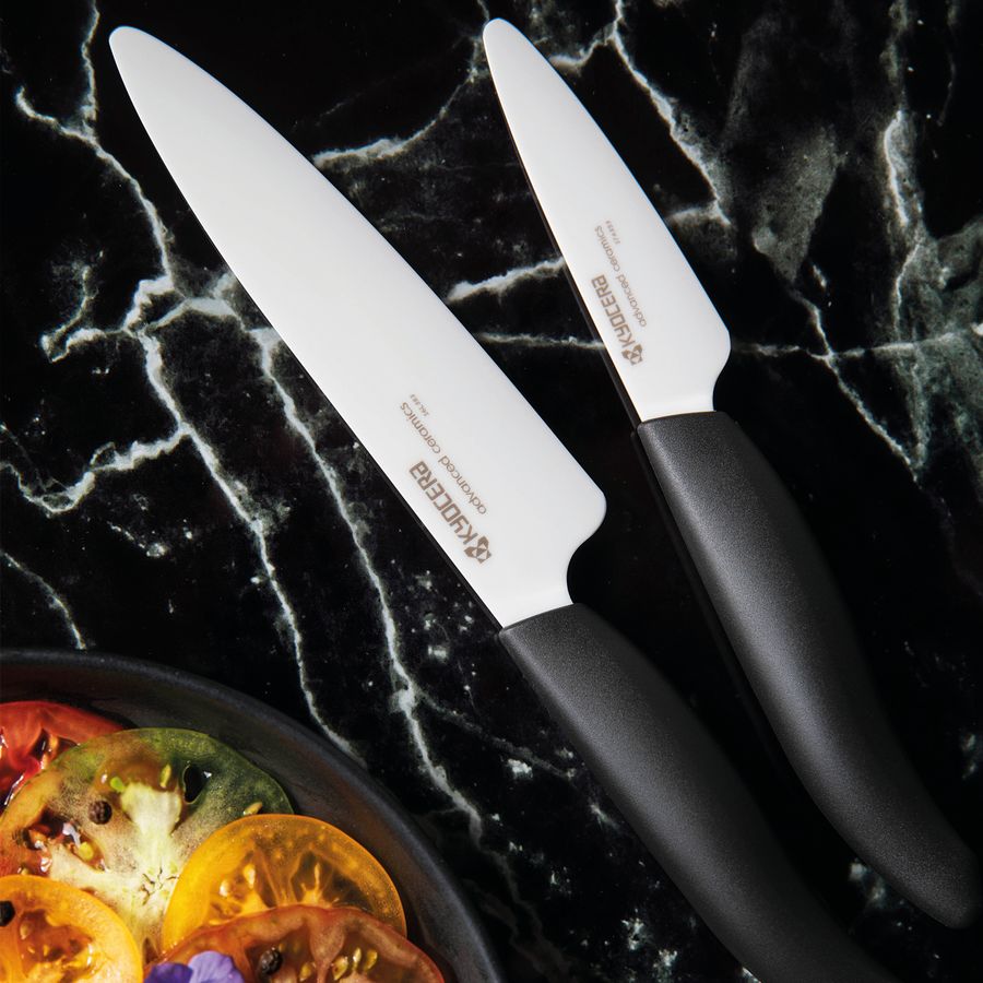 Die Keramikmesser der Kyocera GEN Serie sind die optimalen Messer für den täglichen Gebrauch. Ob Obst, Gemüse, Salat oder knochenfreies Fleisch die Keramikmesser der GEN Serie schneiden alle Zutaten mit besonderer Leichtigkeit. Die extreme Schärfe der Hochleistungskeramikklingen ermöglicht absolut präzise Schnitte. Zudem sind die Messer ultraleicht und machen das Schneiden besonders mühelos und angenehm. Aufgrund der flexiblen Keramikklinge besitzen die Messer eine besonders hohe Bruchfestigkeit. Der ergonomisch geformte Kunststoff-Griff liegt angenehm in der Hand. Keramikklingen sind frei von Metall-Ionen und somit korrosionsfrei. Zudem bleiben die Klingen der Keramikmesser besonders lange scharf, daher ist Nachschleifen für lange Zeit nicht nötig, aber möglich. Die Kyocera Keramikklingen sind handgeschliffen. Die Messer sind spülmaschinengeeignet.