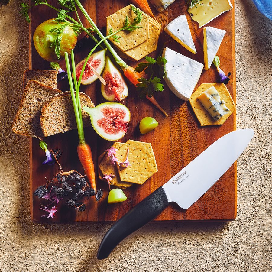 Nachhaltig scharf: Die neue Bio Serie von Kyocera. Jetzt wird‘s auch in der Küche ökologisch: Die neue Bio Serie von Kyocera präsentiert ergonomisch geformte Griffe, die aus Bio-Plastik, zum Großteil bestehend aus dem nachwachsenden Rohstoff Zuckerrohr, gefertigt werden. Zudem kommt die Verpackung der Schneidwerkzeuge ganz ohne Kunststoff aus. Wie bei allen Küchenutensilien von Kyocera bestehen die handgeschliffenen Keramikklingen aus besonders hochwertiger Zirkoniakeramik, einem sehr leichten und extrem harten Hightech-Material. Die dichte und glatte Klingenoberfläche ermöglicht einen präzisen und extrem scharfen Schnitt und transportiert keine Metallionen. Auch die neuen Bio Messer behalten ihre Schärfe für einen bewundernswert langen Zeitraum. Dank des ergonomischen Griffes aus Bio-Plastik, liegt es angenehm in der Hand. Somit sind die sehr scharfen Messer ideal für Gemüse, Fisch und Fleisch – passend für jede Profi- oder Hobbyküche.