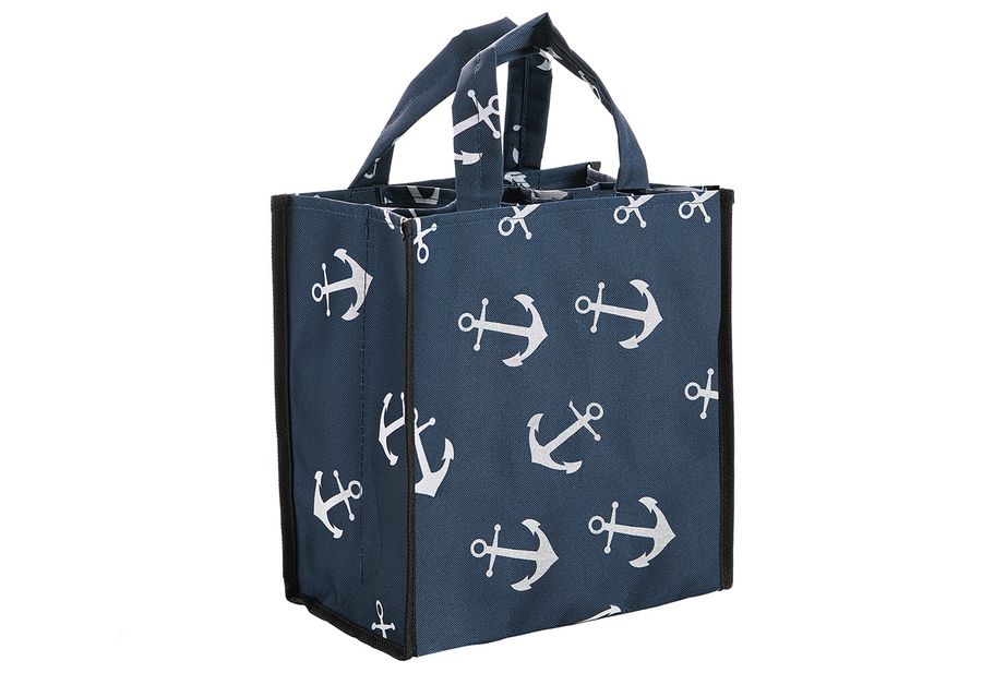 mit 6 Fächern, Motiv: Anker, 2 Tragegriffe aus robustem Gurtmaterial, Innenseite wasserabweisend, beschichteter reißfester Stoff, umlaufende Tragegurte, max. Tragkraft 12 kg·blau (BxHxT): 26x27,5x17 cm·Fachhandel exklusiv·