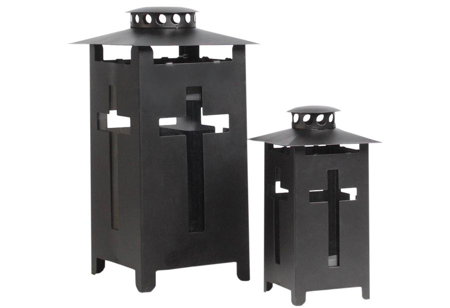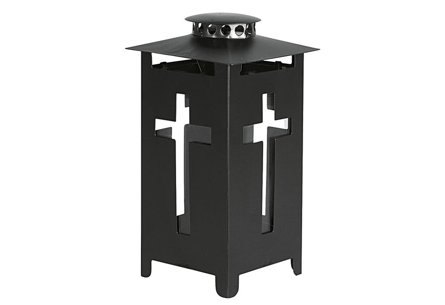 Metall, mit Kreuz·schwarz (LxBxH): 13,5x13,5x25 cm
