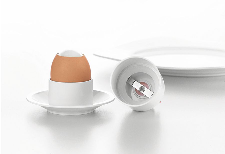 Kunststoff / Edelstahl, einzigartige Rotationsklinge, 3 in 1 Eierbecher, Warmhalter und Eierköpfer·weiß Eierbecher Ø 9,7 cm, H 8,5 cm