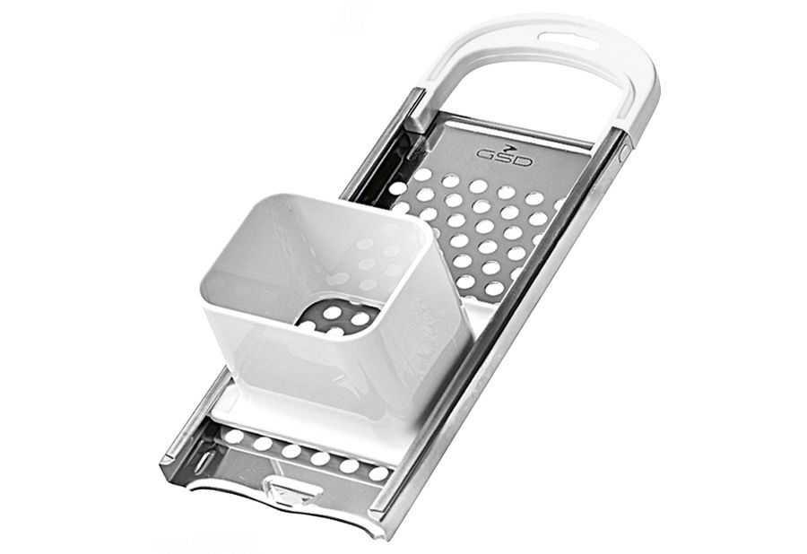 Hobel aus Edelstahl, Griff und Teigbehälter aus weißen Kunststoff, Behälterinhalt: ca. 400 ml (LxBxH): 32,5x11x7 cm