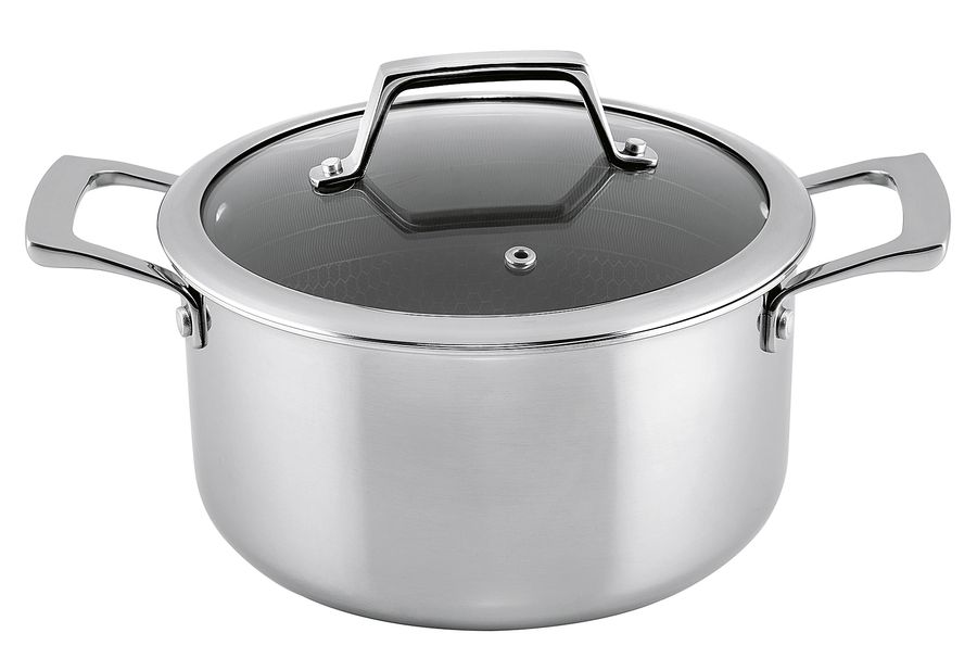 Edelstahl / Aluminium / Hybrid Beschichtung, die fortschrittliche Mehrschichttechnologie sorgt für eine optimale Wärmeverteilung, die Beschichtung ermöglicht die Verwendung von Metallutensilien, PFAS-frei, backofenfest bis zu 260 Grad (ohne Deckel)·schwarz / edelstahl 3,4 l, Ø 24 cm