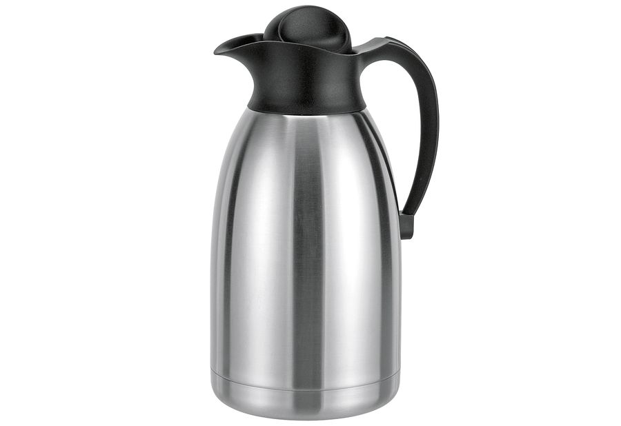 Edelstahl, doppelwandig, mit Drehverschluss, Getränk bleibt über mehrere Stunden heiß oder kalt. Füllen Sie keine kohlensäurehaltigen Flüssigkeiten in den Getränkespender, da dies einen Überdruck verursachen kann! Verwenden Sie keine Eiswürfel! Eissplitter können die Ausgieß-Automatik beschädigen oder blockieren! Kinder nicht unbeaufsichtigt mit heiß befüllter Isolierkanne hantieren lassen! Verbrennungsgefahr!·silber 2 l, Ø 13,6 cm, H 28,5 cm