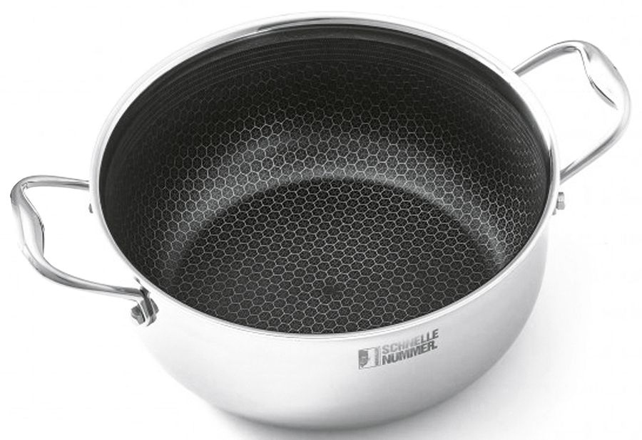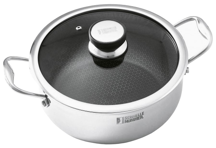 Edelstahl, gefertigt in einem 3-Schicht Material und Wabenstruktur, ideal als Bratentopf, Fleischtopf und Gemüsetopf zum schnellen Kochen und Garen von Fleisch, Fisch und Gemüse einsetzbar, sein besonderes Design spart dabei gleichzeitig Zeit und wertvolle Energie beim Kochen, für alle Herdarten geeignet, einschließlich Induktionsherd, Gas- und Elektroherd sowie Keramikherd, bis 250°C hitzebeständig und backofenfest, durch mehrere Schichten aus Edelstahl und Aluminium sowie die Antihaftbeschichtung gelingt perfektes Garen im Handumdrehen und weitaus schneller als bei anderen Kochtöpfen, die interne Zirkulation ist speziell für aufwendige Gar- und Schmorvorgänge besonders hilfreich und schützt vor lästigem Überkochen Ø 24 cm, 5,0 l