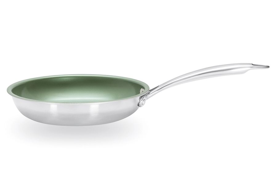 hochwertige Edelstahl-Pfanne mit CeraVegan pflanzlicher Keramik-Antihaftbeschichtung auf Basis von Avocado-Öl, zum Braten und Kochen ohne Fett, kratzunempfindlich und robust, gleichmäßige Hitzeverteilung, kein Anbrennen und Anhaften, ideal zum scharfen Anbraten, spülmaschinengeeignet, backofengeeignet bis 180 °C, für alle Herdarten geeignet·grün / silber Ø 20 cm