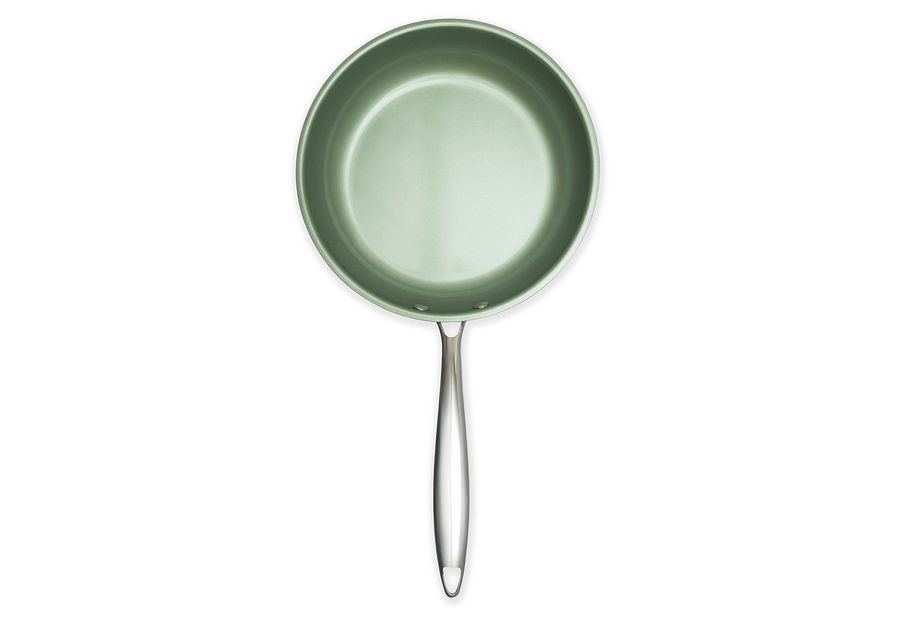 hochwertige Edelstahl-Pfanne mit CeraVegan pflanzlicher Keramik-Antihaftbeschichtung auf Basis von Avocado-Öl, zum Braten und Kochen ohne Fett, kratzunempfindlich und robust, gleichmäßige Hitzeverteilung, kein Anbrennen und Anhaften, ideal zum scharfen Anbraten, spülmaschinengeeignet, backofengeeignet bis 180 °C, für alle Herdarten geeignet·grün / silber Ø 24 cm