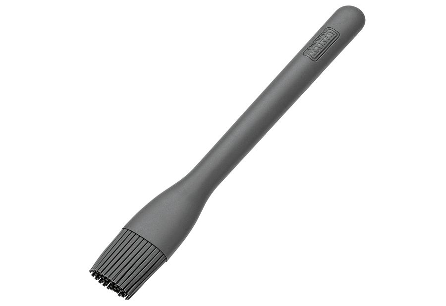 Feine Pinselborsten, hochwertiges Platinum-Silikon, robuster Metallkern, Anti-Rutsch-Griff, optimale Ergonomie, hohe Hitzebeständigkeit bis zu 200 °C, nahtloses Design, spülmaschinengeeignet·grau